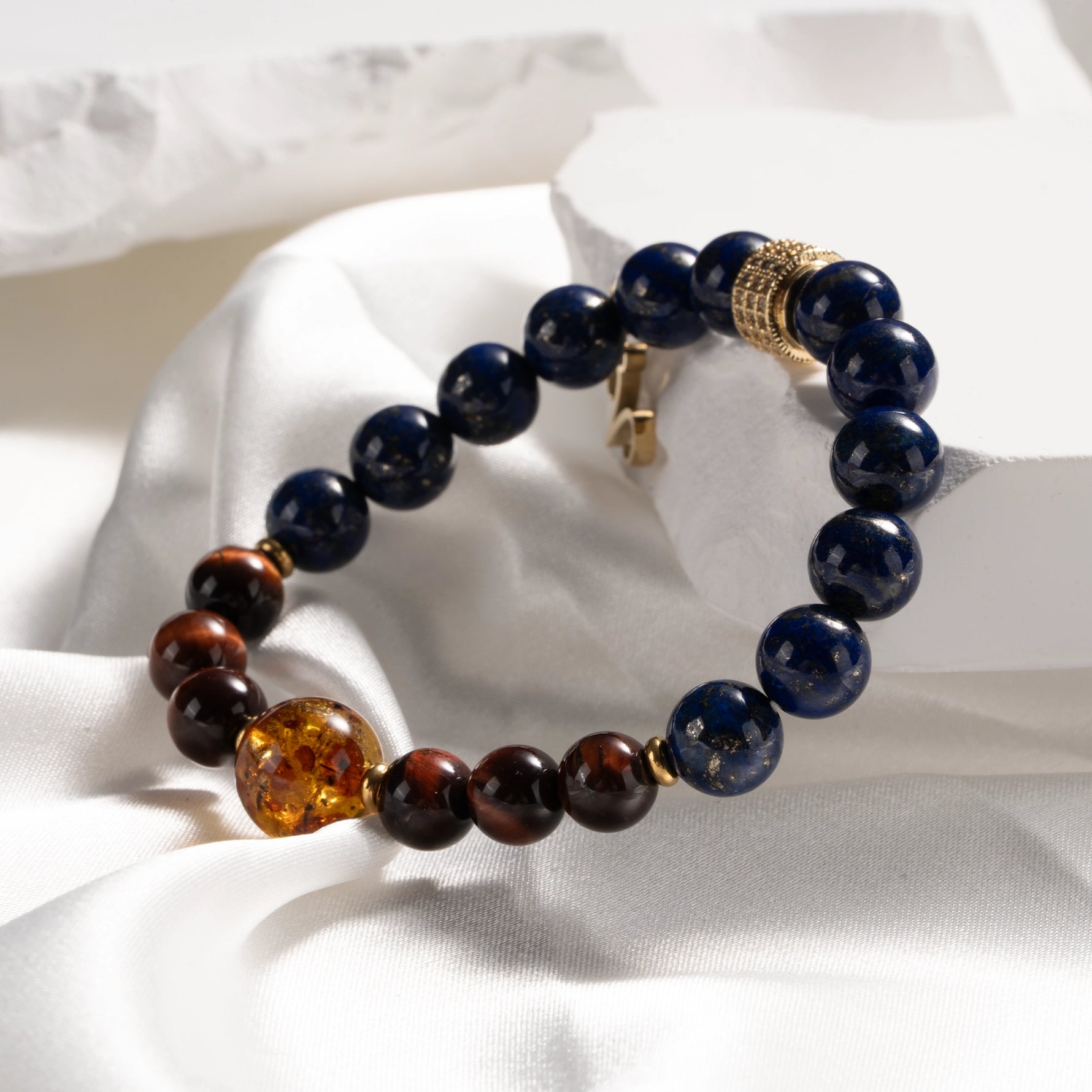 Aether Lapis Lazuli Red Tiger's Eye Piebald Amber Aries Bracelet