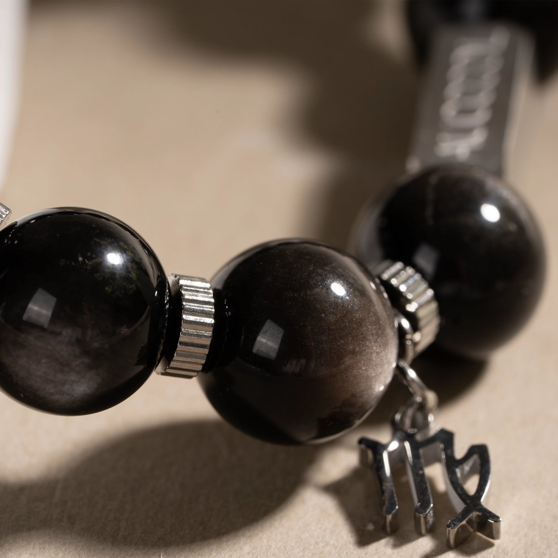 Fearless Shield Silver Obsidian Virgo Bracelet